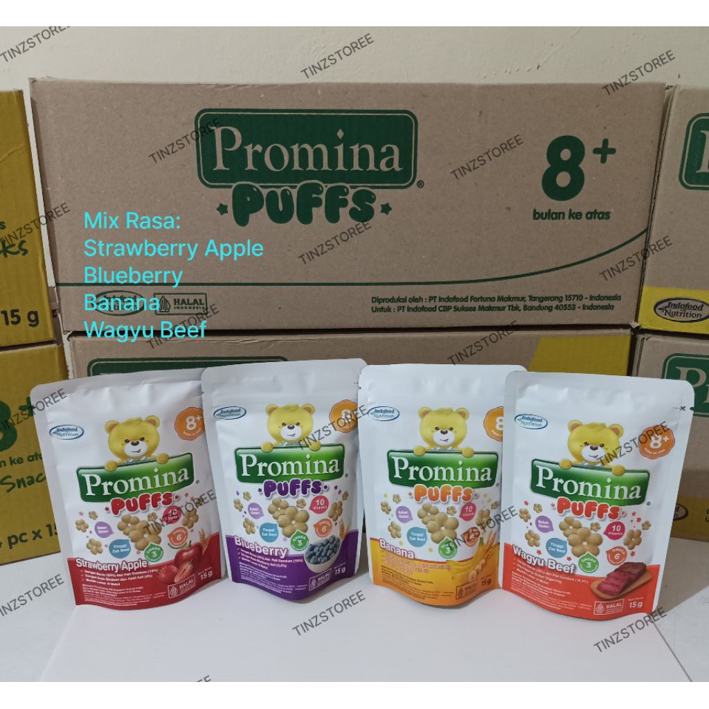 promina puffs pisang / blueberry / strawberry apel / wagyu - 1 dus isi 24 pcs