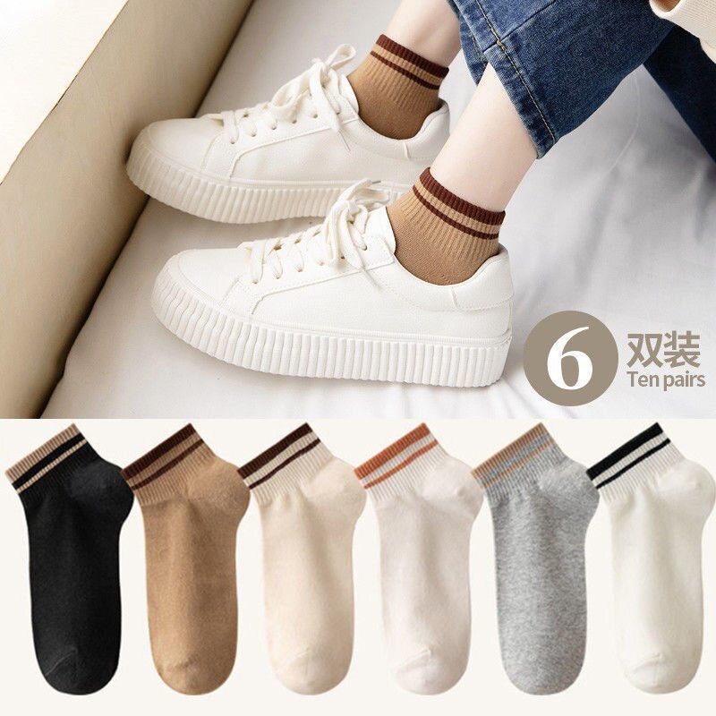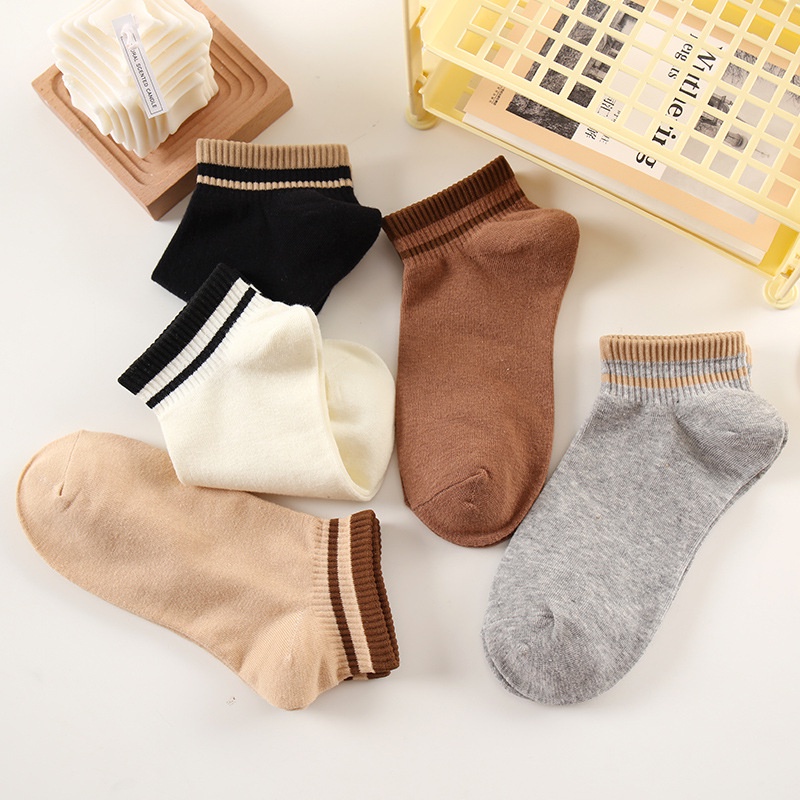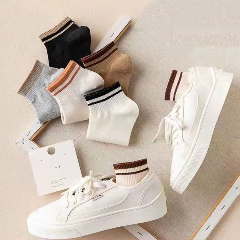 CLICKBRA | KK823 Kaos Kaki Garis Unisex Wanita pria Korea Kaus Kaki Panjang Betis Warna Cewek Cowok