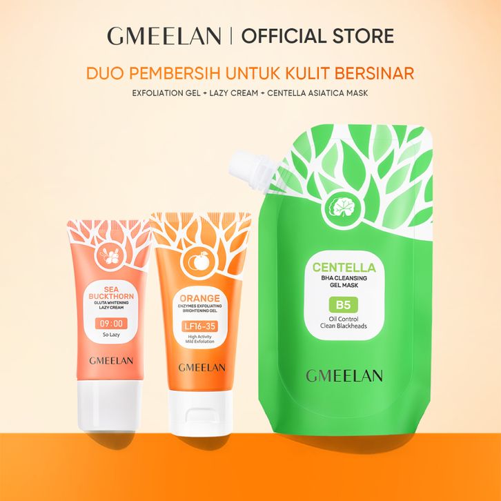 krim pemutih wajah bpom flek hitam glowing GMEELAN SET Kits Wajah Exfoliating Gel Blood Orange 50g + Krim pemutih Lazy