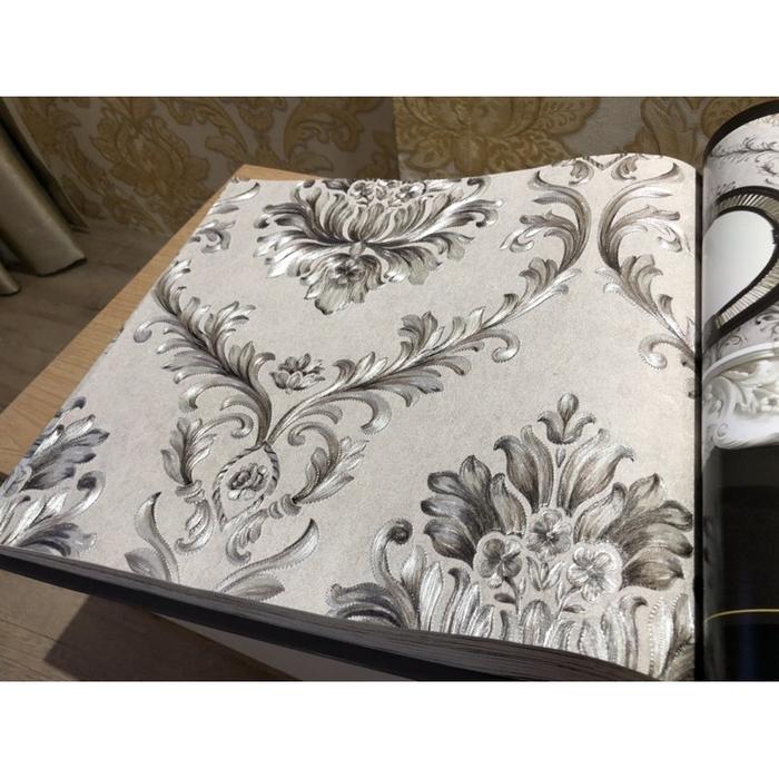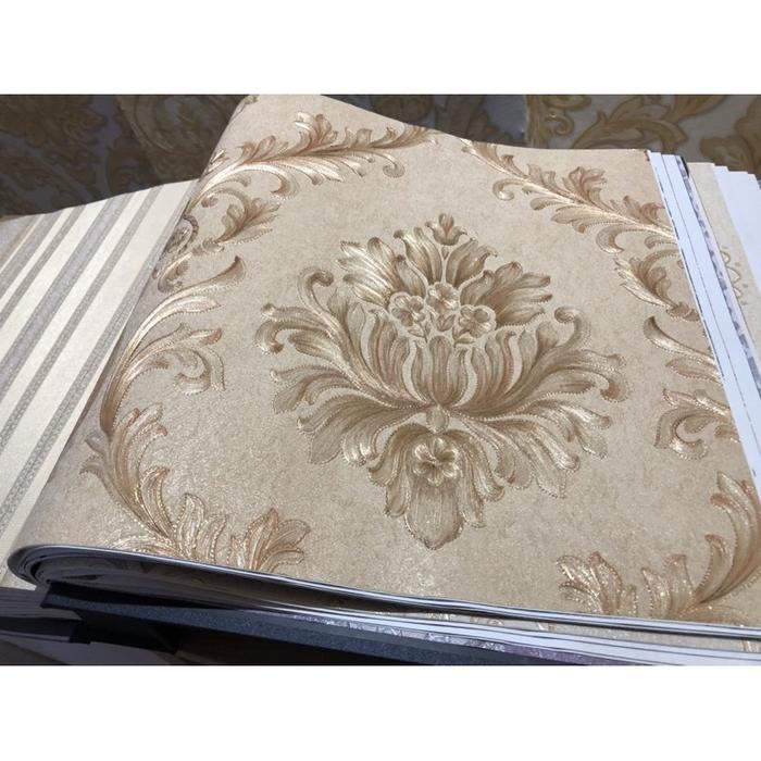Wallpaper Dinding Klasik Biru Cream Gold Abu Mewah Emboss