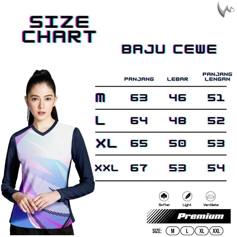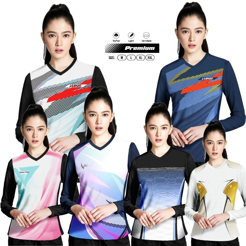 Winstorm Lengan Panjang Baju Olahraga Cewe Premium Dewasa Jersey Badminton Wanita Koas Voli Print