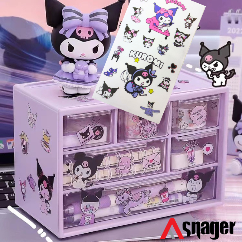 Snager Rak Penyimpanan Serbaguna Kuromi Stiker DIY Kotak Organizer Tempat Aksesoris KTK02