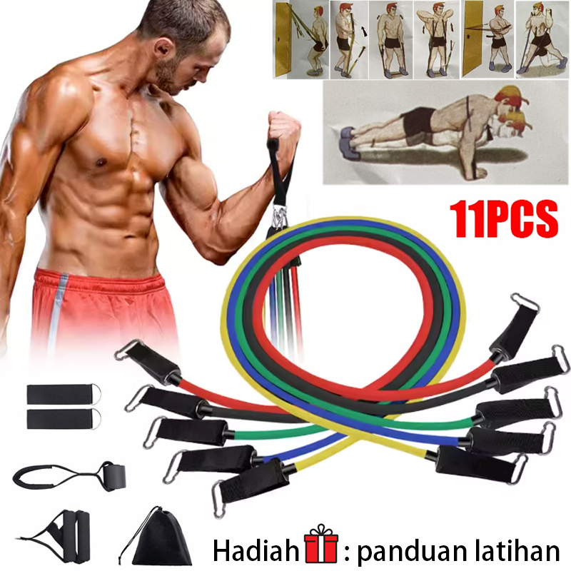Resistance Band Set 11 PCS / Set Tali Fitnes Stretching Rope Gym Yoga