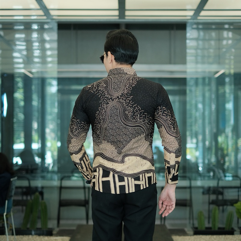 BARA HITAM Kemeja batik pria lengan panjang full furing slimfit katun halus lembut
