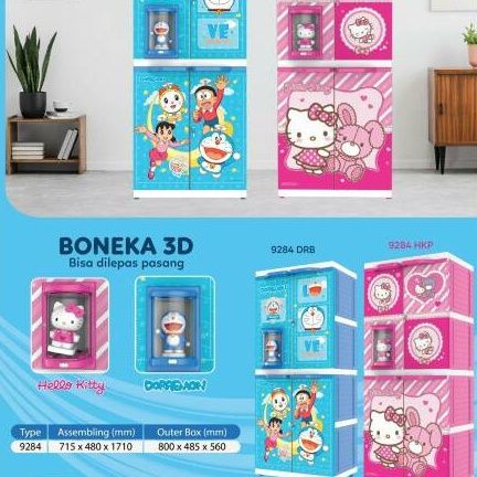 Lemari Pakaian Plastik Jumbo NAIBA – Lemari Anak Karakter MSC Boneka, Desain Lucu, Kuat & Harga Ekonomis