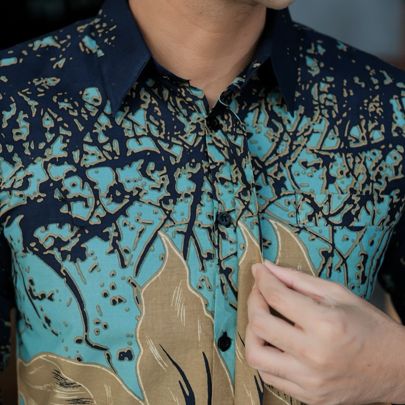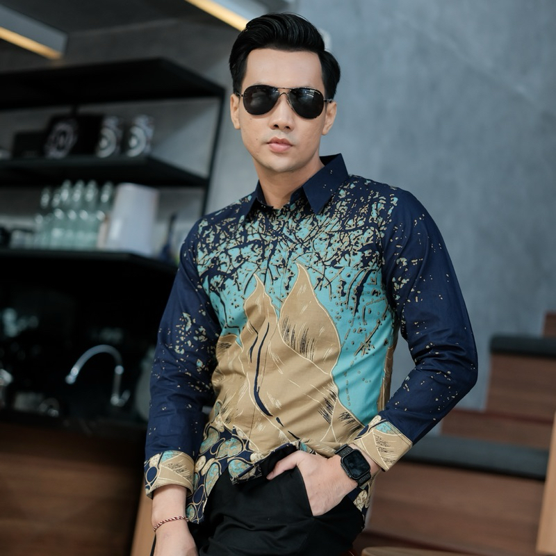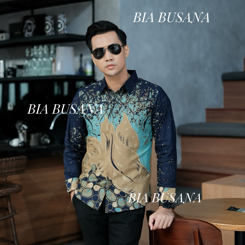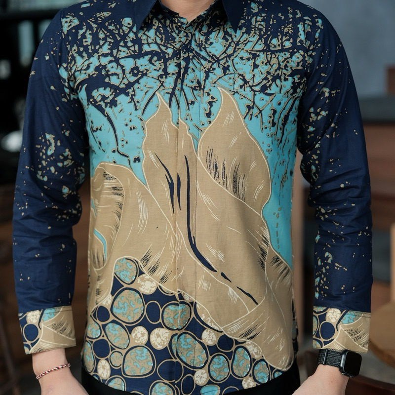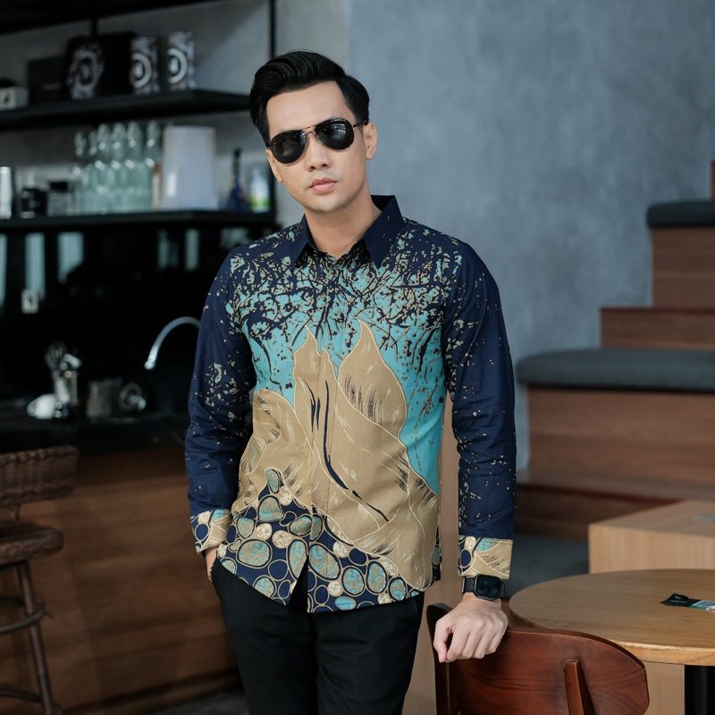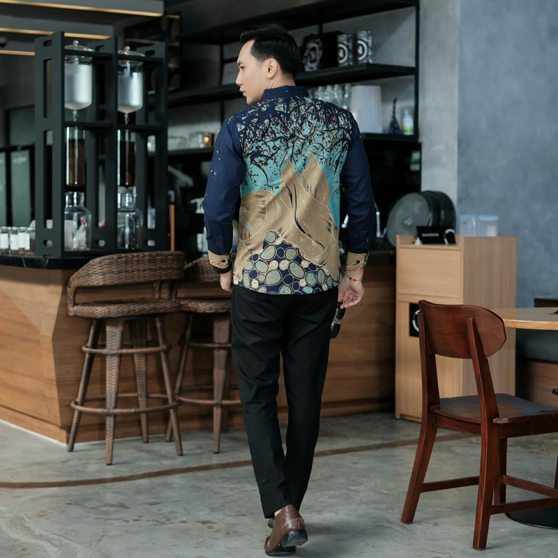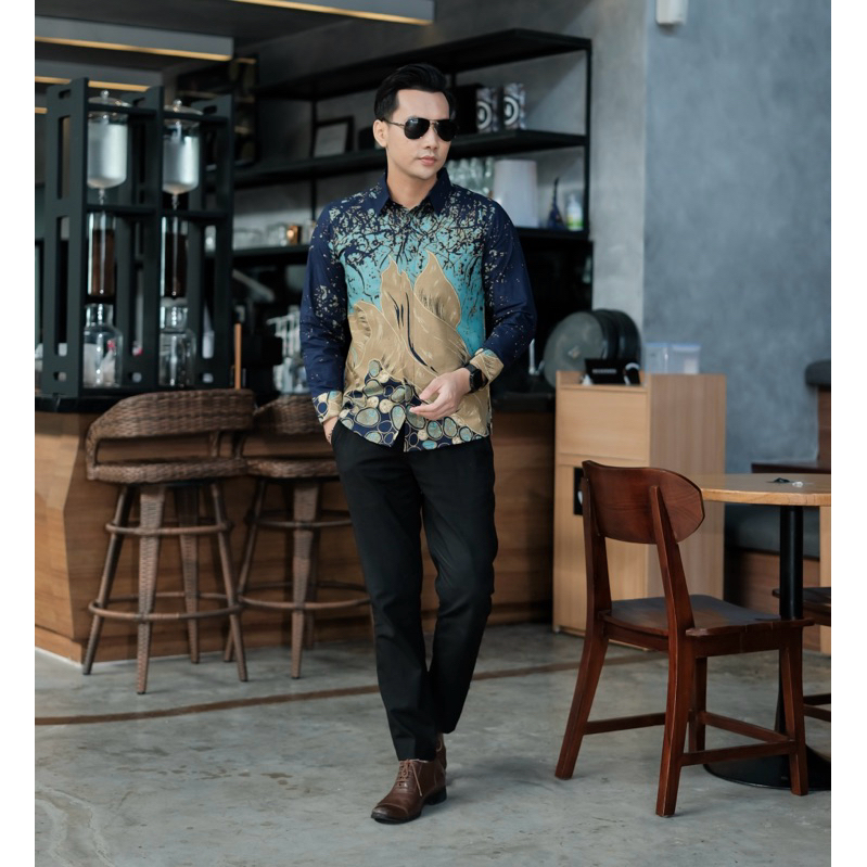 KUSUMO BIRU Batik Pria Slimfitting Lengan Panjang Premium Full Furing Katun Primisimma Warna denim