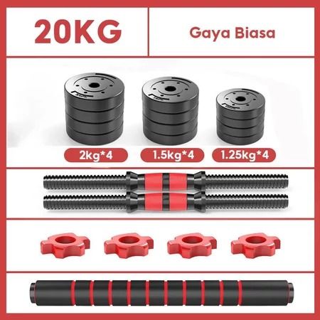 [HelloShop] Dumbbell Set 20kg Peralatan Fitness Barbel Set Dengan Perlindungan Lingkungan Bisa Disambung Tiang Angkat