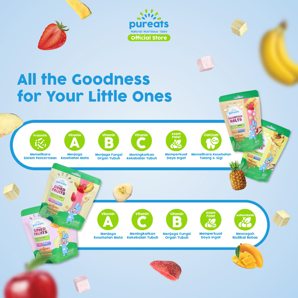 Pureats Bundle Mix (Dried Fruits & Smoothie Melts) - Paket Snack Buah Kering Cemilan Sehat Alami Anak Bayi