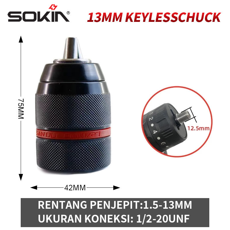 SOKIN Tools Kepala Bor 13MM Drill Chuck 3/8" Chuck besi Kepala Chuck Untuk Bor listrik Impact wrench