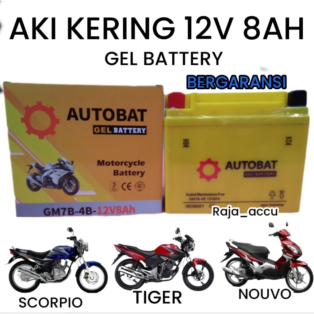BISA CICIL AKI MOTOR SCORPIO, TIGER, NOUVO, AUTOBAT GM7B-4B 12V 8AH/ MOTOBATT MTX7D