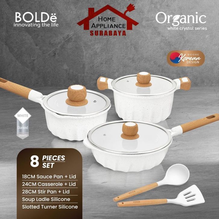 BOLDe Organic White Crystal Series Granite Cookware Set 8 PCS - Panci Wajan Frypan Set Anti Lengket