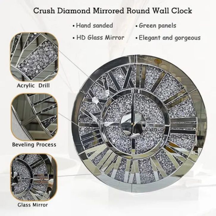 Jam Dinding 50 dan 60cm Mewah Luxury Diamond Mirror Clock Wall