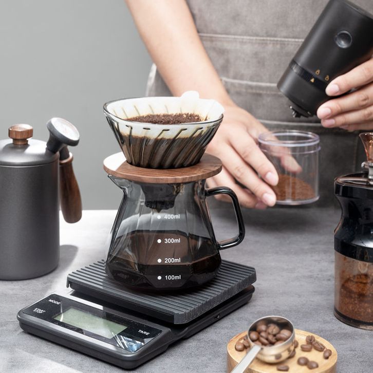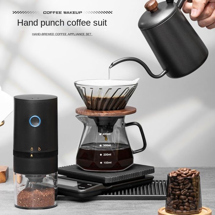 Set Teko Kopi Seduh Tangan Kopi Kotak Hadiah Cangkir Filter Kaca Panci Berbagi Penggiling Biji Skala Elektronik