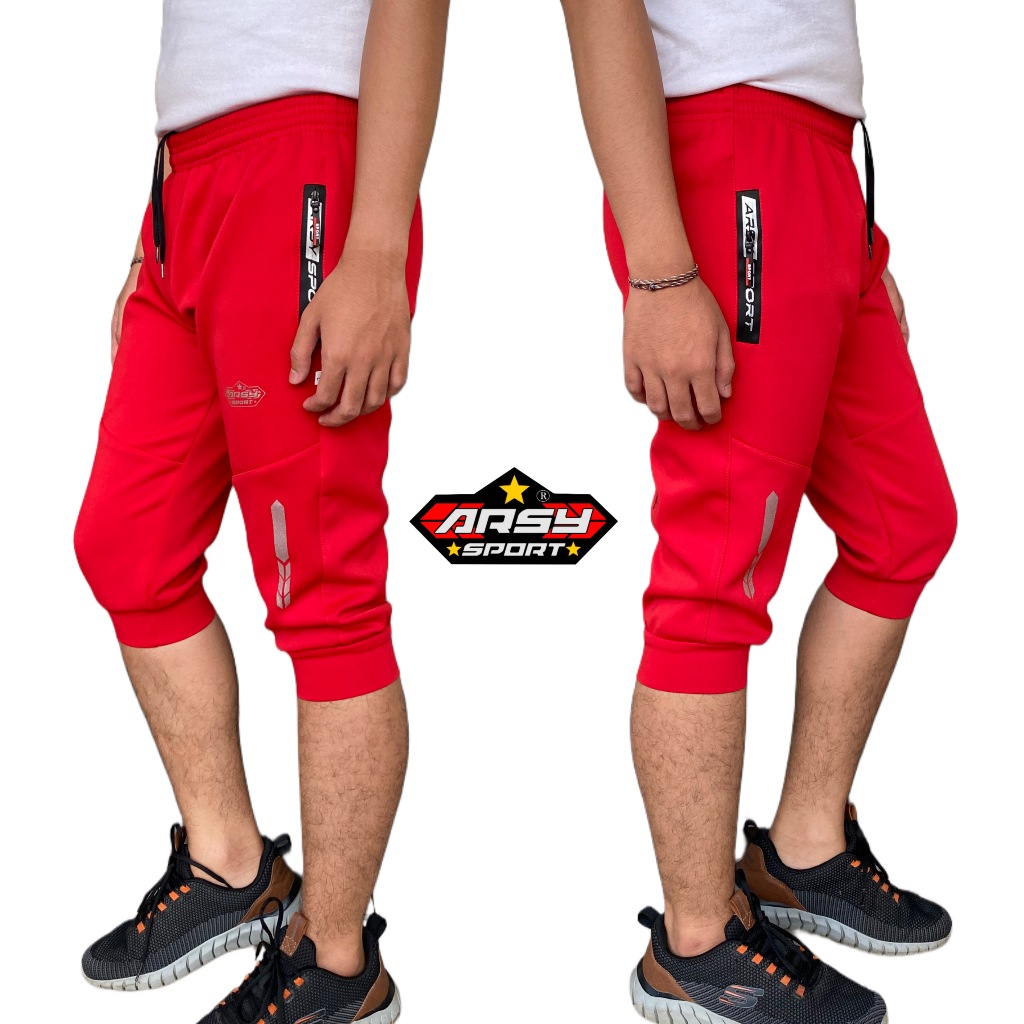 Arsy Sport Celana Running Pria Wanita - Celana Sontog 3/4 Fitnes Gym Bahan Scuba Elastis SS01