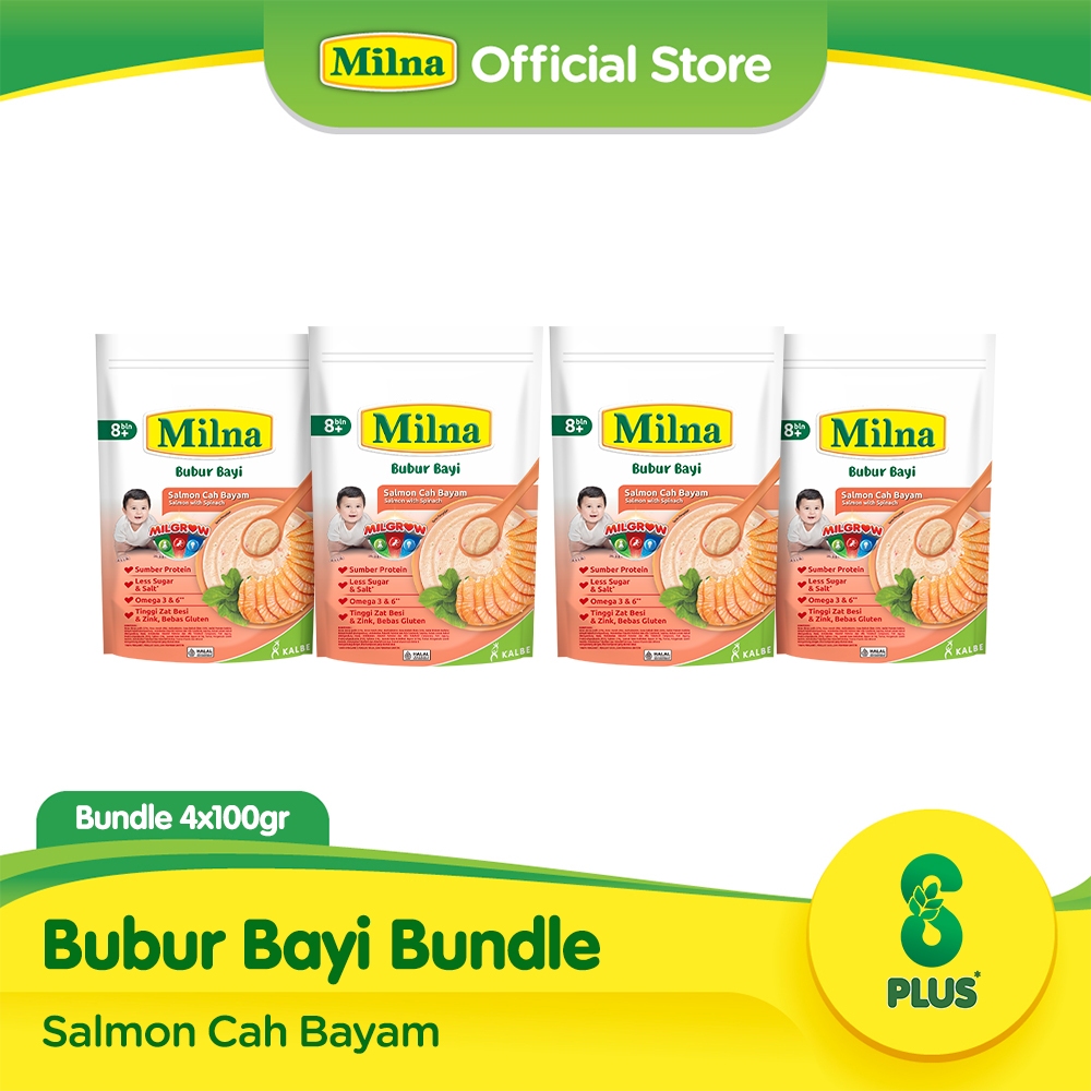 Milna Bubur Reguler 8+ Salmon Bayam 100G (4 pack)