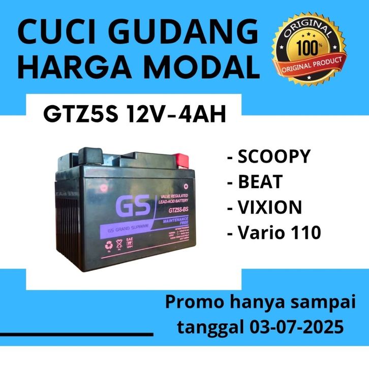 AKI MOTOR GTZ5S SCOOPY, FINO, VIXION 12V 4AH GS