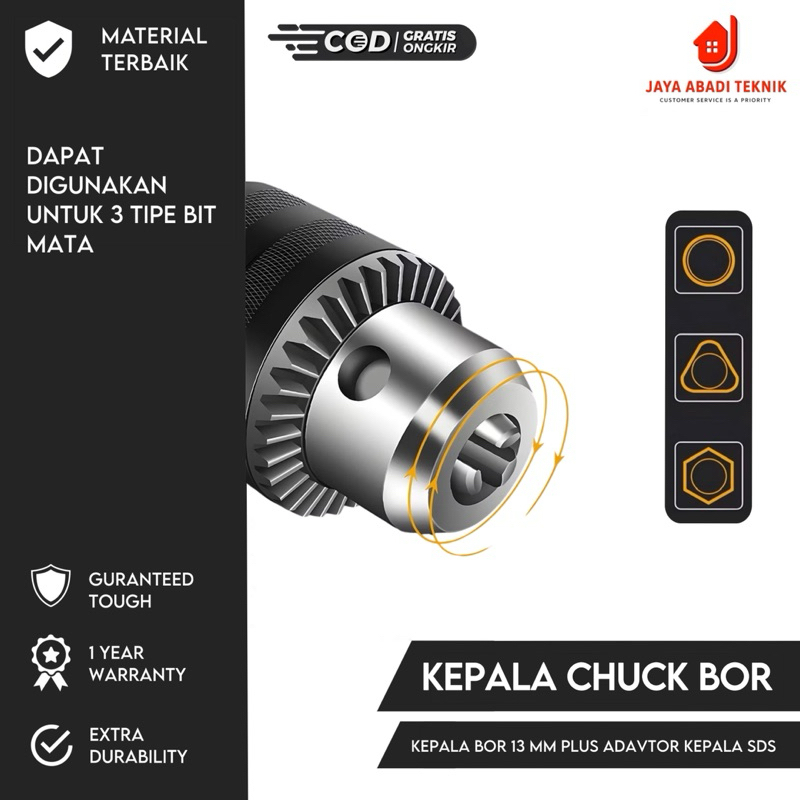 Kepala Bor 13mm + Adaptor SDS Serbaguna (Cocok Kuat & Awet Untuk Mesin Bor)