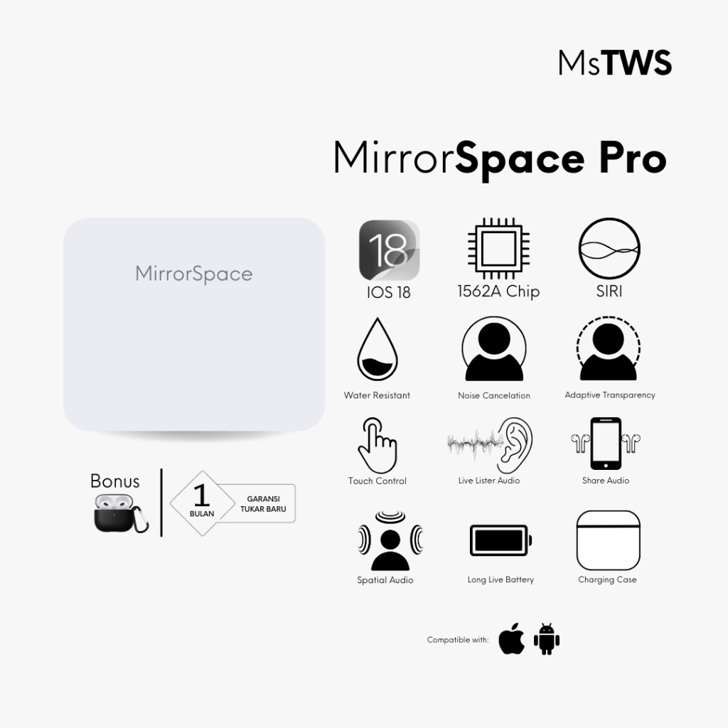 MirrorSpace Pro Wireless Charging Case TWS Bluetooth