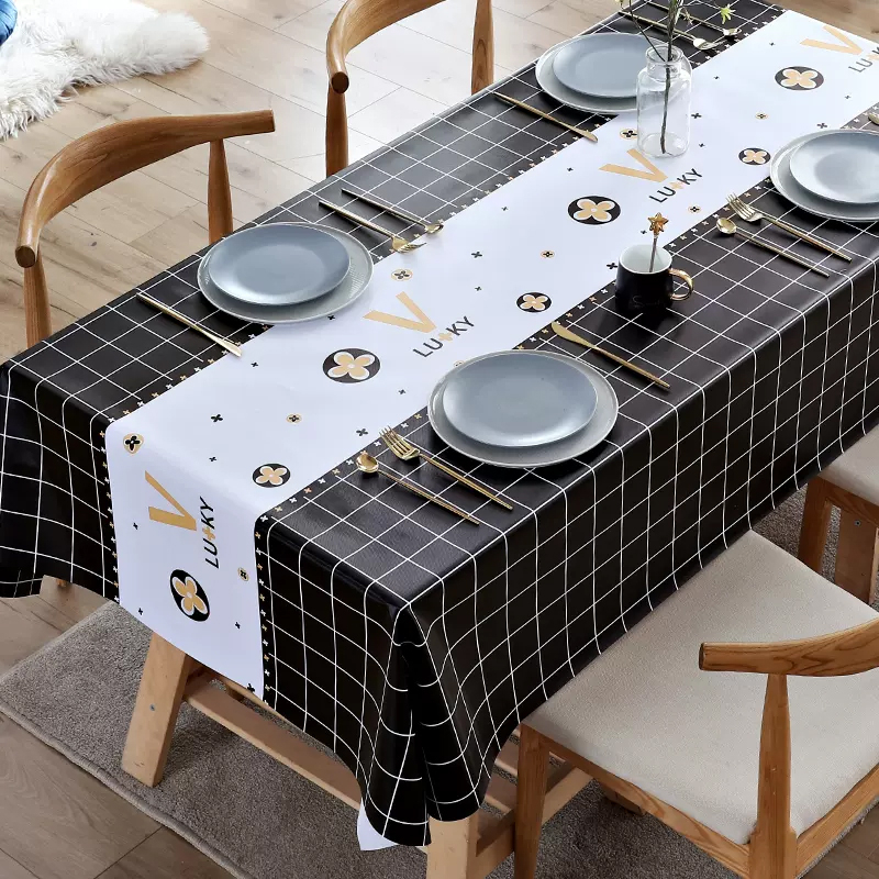 Taplak Meja PEVA Rectangle Anti Minyak Anti Air Anti Terbakar Anti Cuci Meja Makan Hemat Waktu / Taplak Meja Mewah dalam Desain Hemat Biaya untuk Kamar Makan dan Ruang Tamu / Meja Kopi 137CM X 183CM