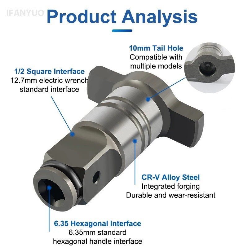 Electric Wrench Adapter Square Head / Alat Kepala Konversi Poros Kunci Pas / T-Shaft Electric Brushless Impact Wrench