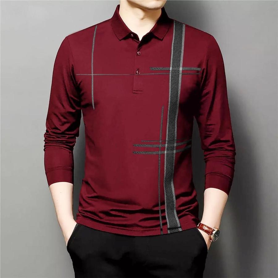 KAOS BERKERAH POLO PRIA LENGAN PANJANG SAVOS Motif Sablon Garis Santai
