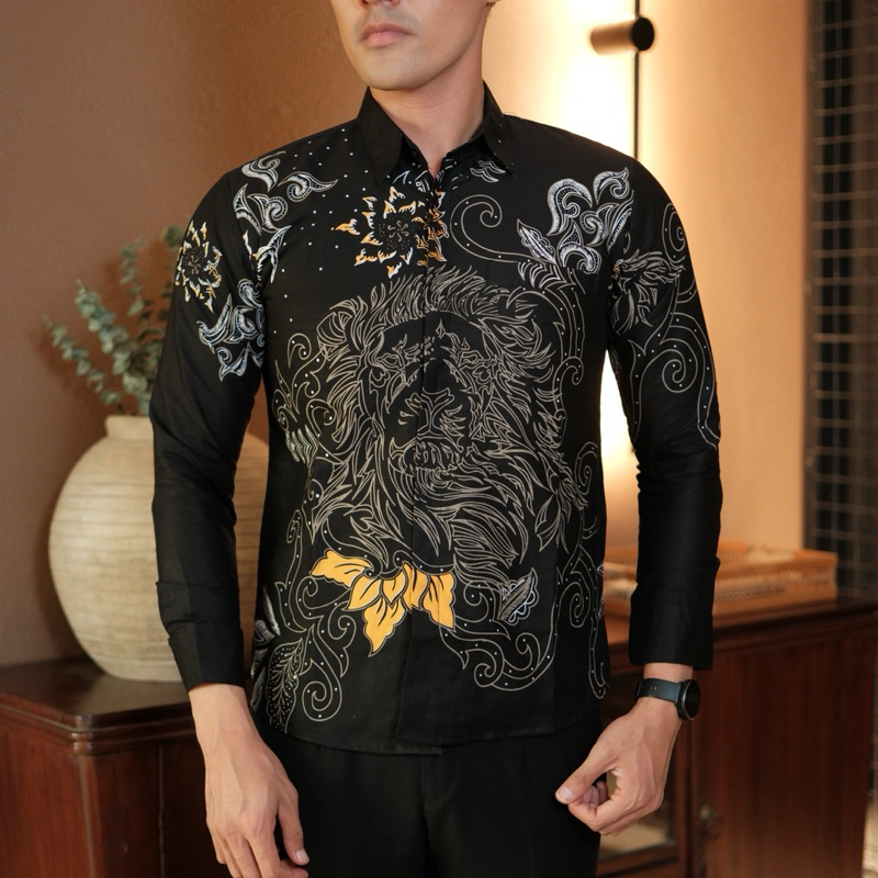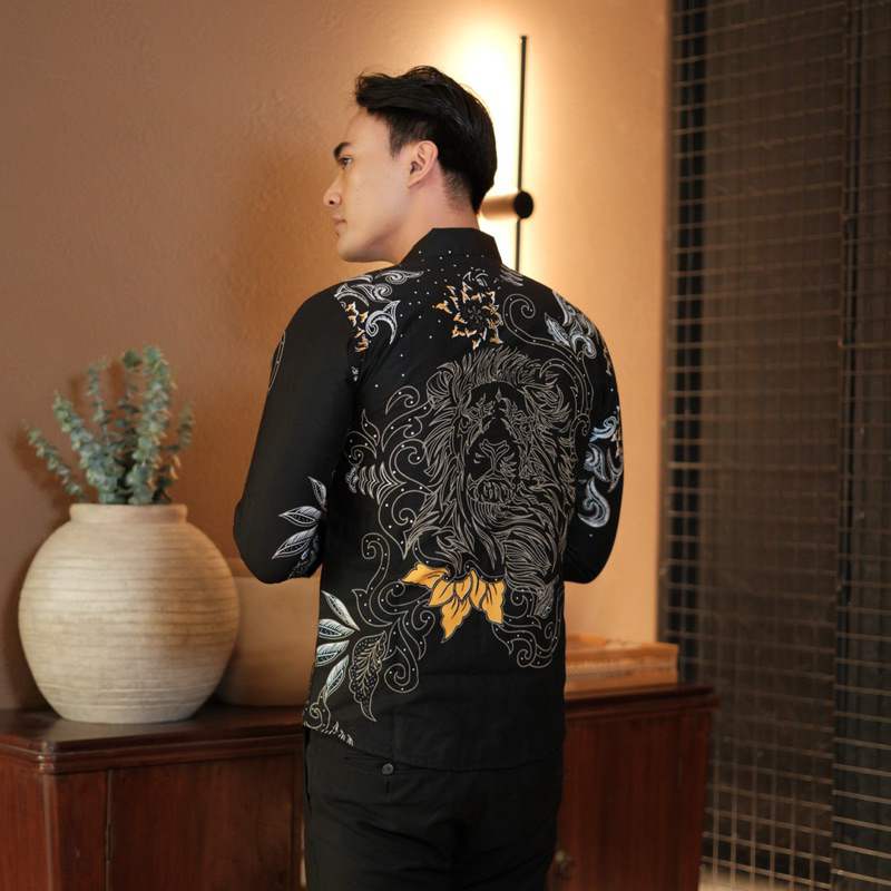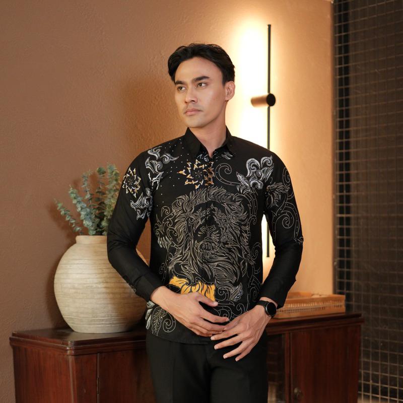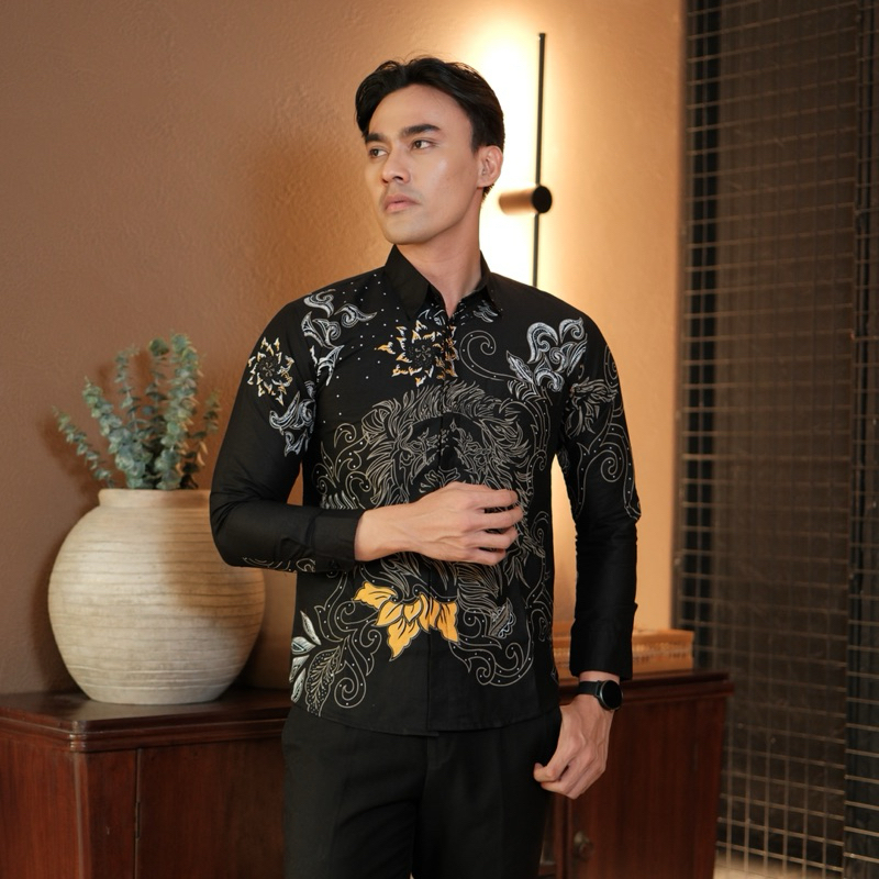 SENTANI HITAM Kemeja batik pria slim fit lengan panjang furing katun halus lembut furing ero