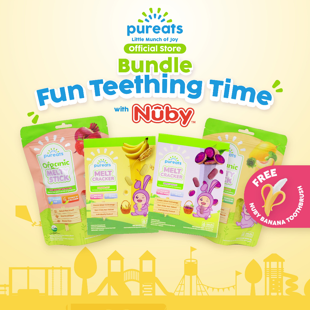 Pureats X Nuby Bundle Teething Time (Melty Cracker & Melty Stick) - Paket Snack Cemilan Sehat Alami dengan Sikat Gigi Ba