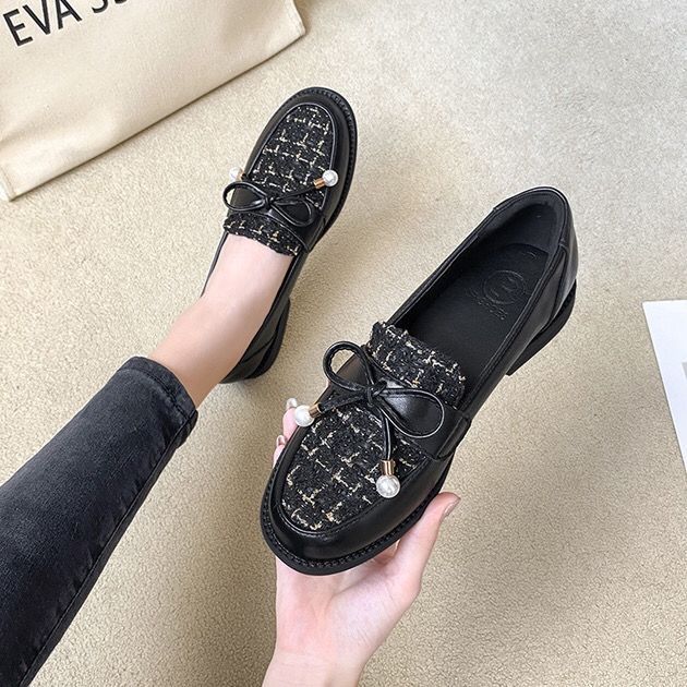 DIATA Sepatu docmart wanita pita mutiara gaya kekinian seppatu loafers sepatu oxford