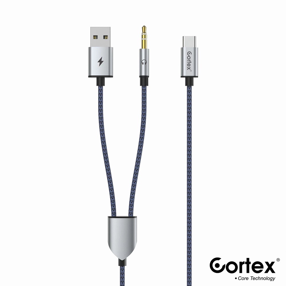 Cortex Power - MH264 Type-C to Jack 3.5mm with USB Charging / Tipe C Audio + Charger Kabel 1.2Meter