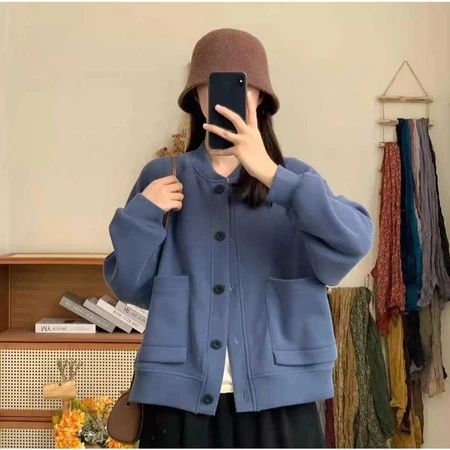 Bianca Button Cardigan Wanita Korea Kekinian Cardie Sweater Oversize Bahan Fleece Tebal Halus Trendy