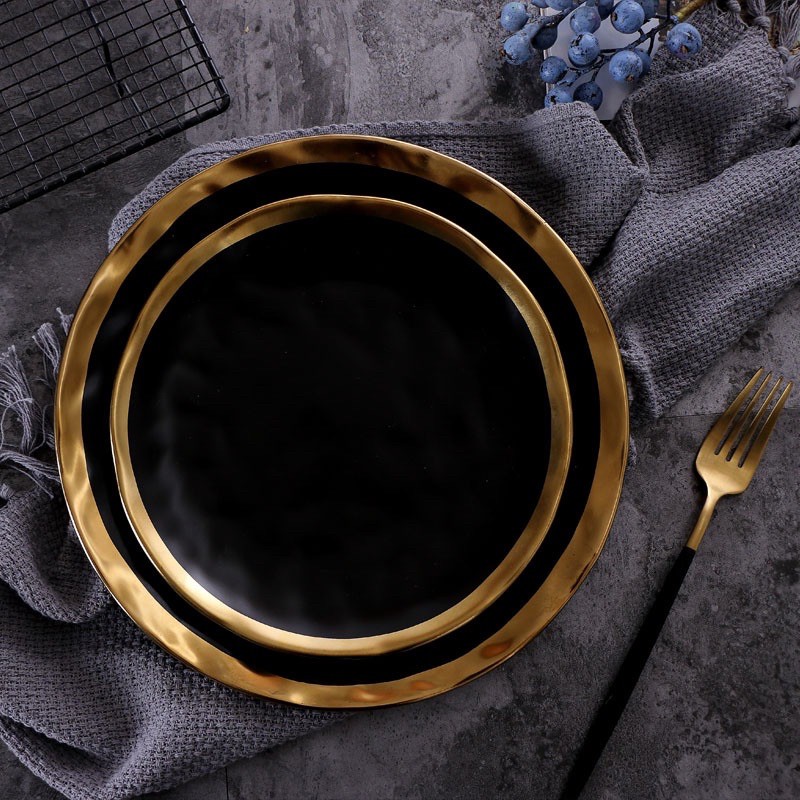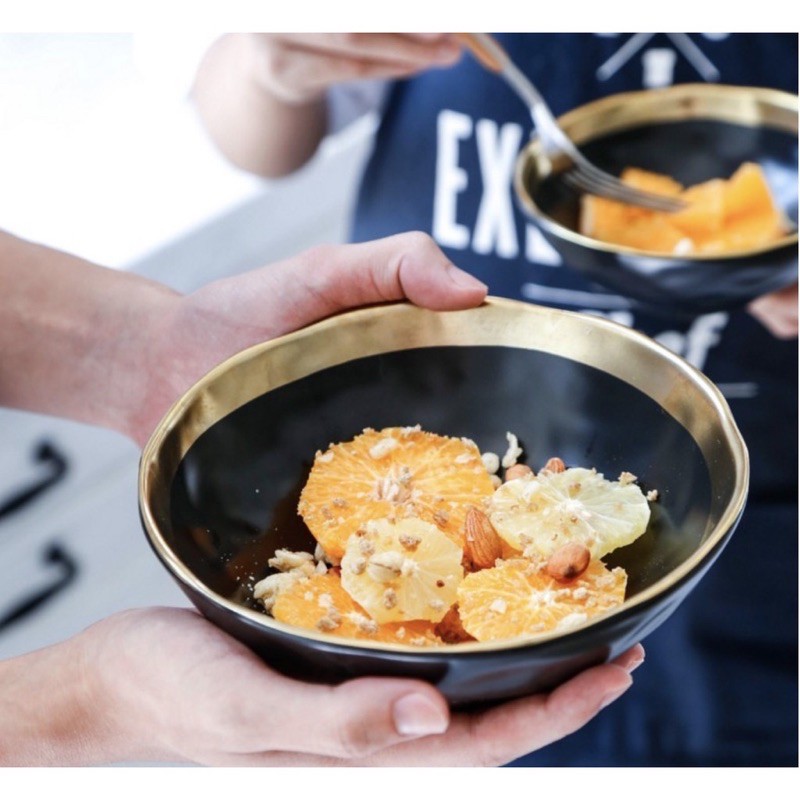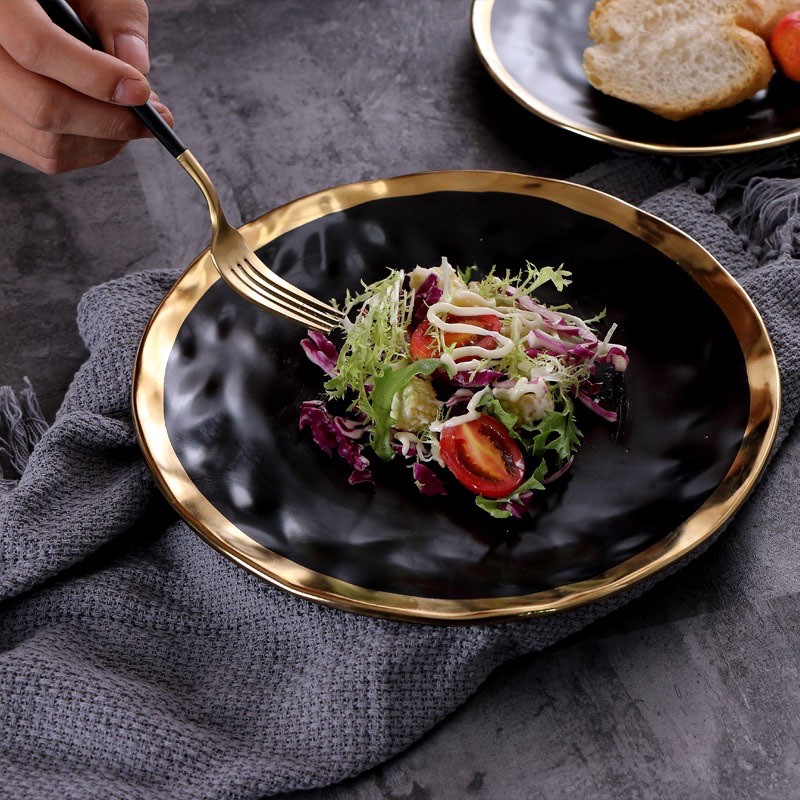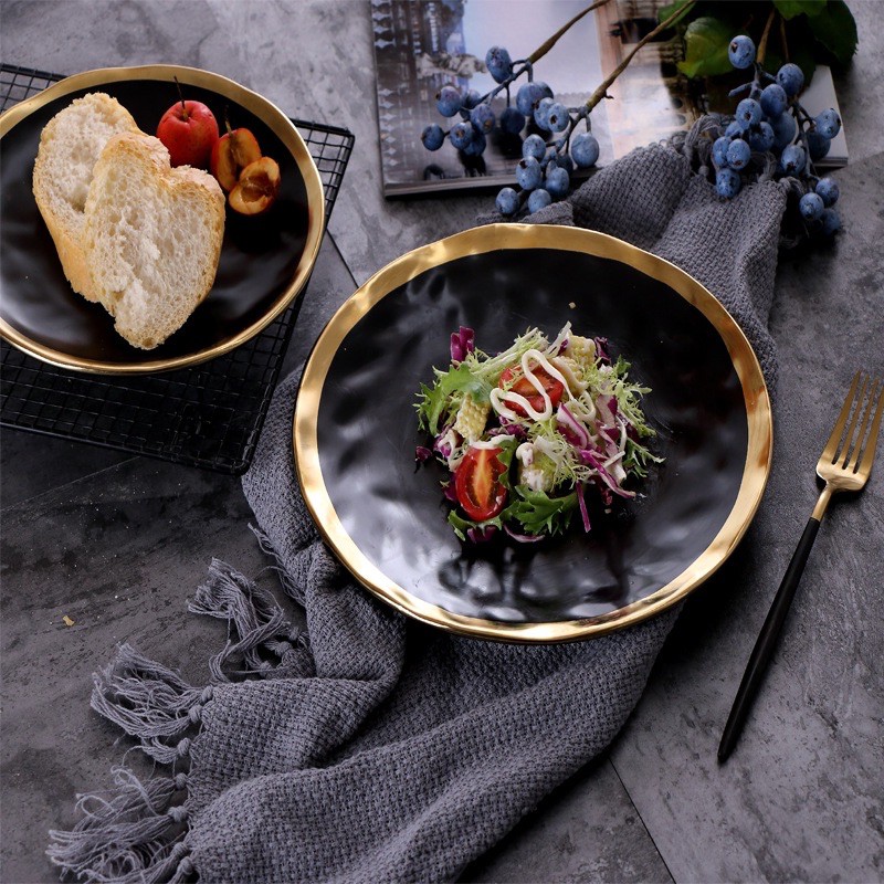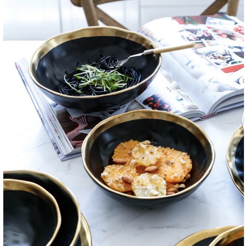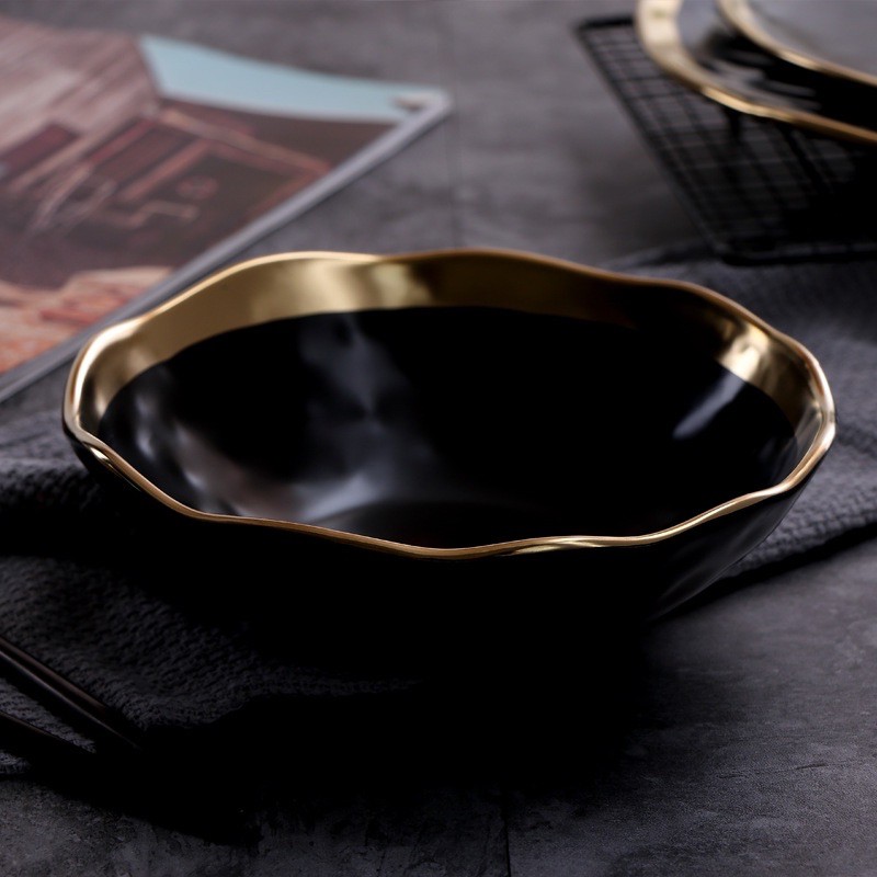Gold Rim Black Matte Dishes Ceramic mangkuk makan keramik Bowl / Piring Mangkok Makan