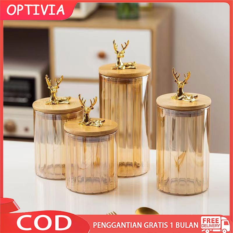 OPTIVIA Elk Snack Toples Kaca Tempat Penyimpanan Snack Mewah / STR / berlian Toples Makanan Serbaguna / Toples Kaca / Jar Toples Kaca Kotak Penyimpanan Makanan / Toples Penyimpanan / Toples