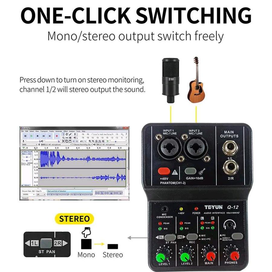 Teyun Sound Card USB Mini Portable 2 Way Driver Free Mixer Q12