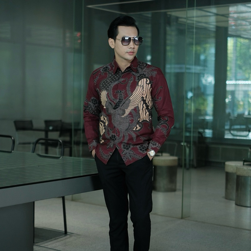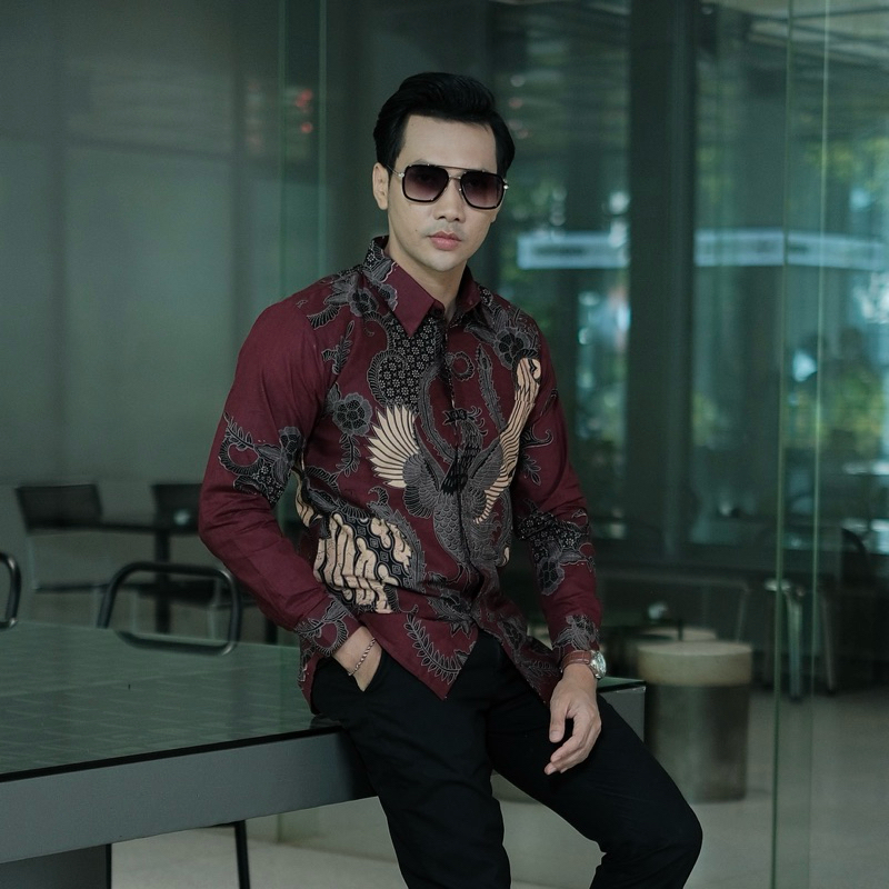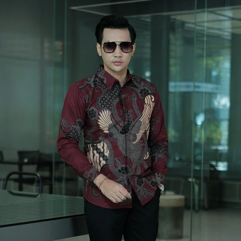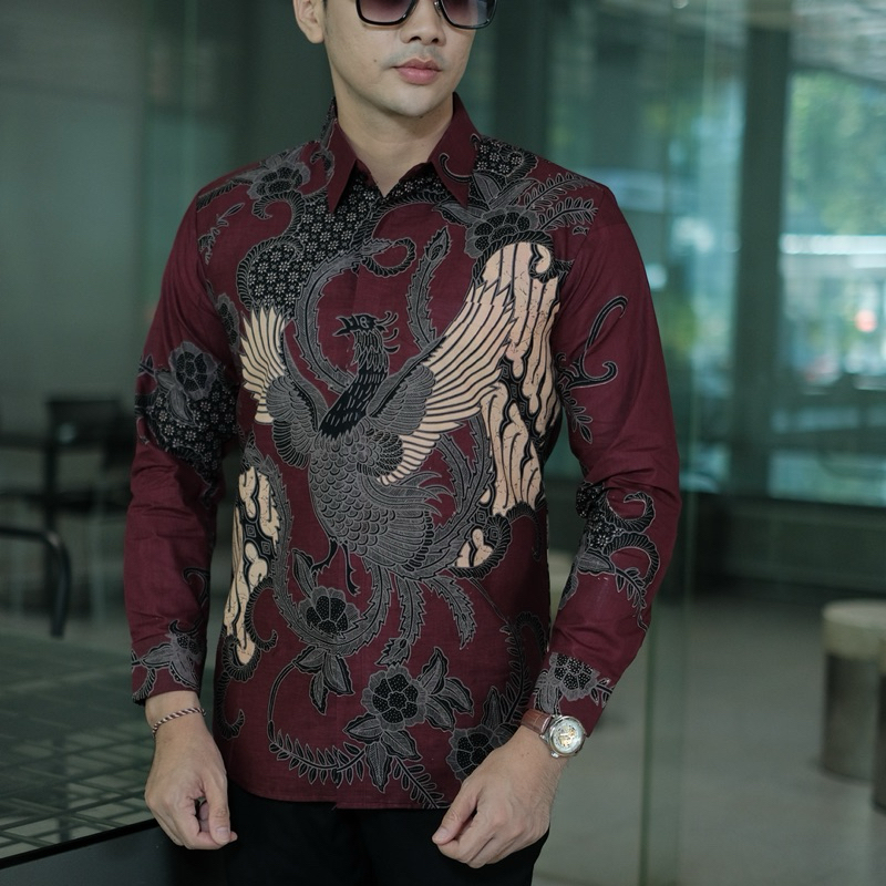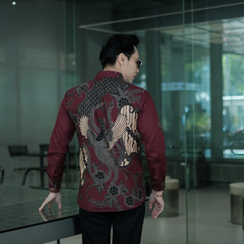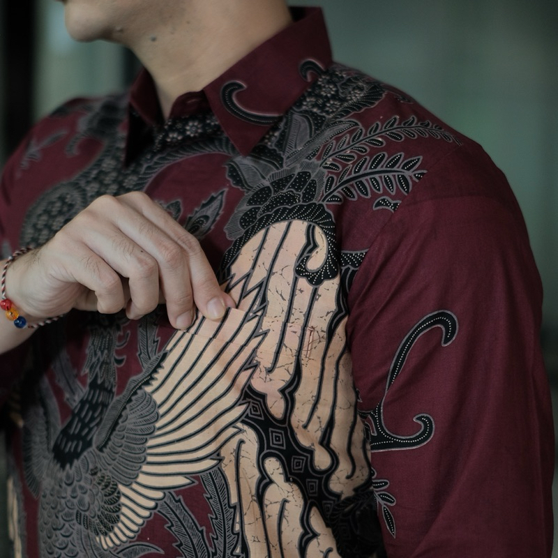 BIMANTARA BURGUNDI Kemeja batik pria lengan panjang furing full katun primisima slimfit