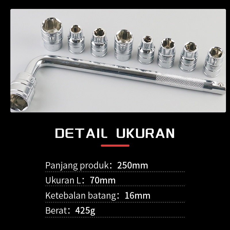 ISKU GaGang Sock L 10'' Sambungan Sock 10 inch 250mm x DR1/2 Bahan Baja vanadium krom Extension Bar Berlaku Untuk Kunci