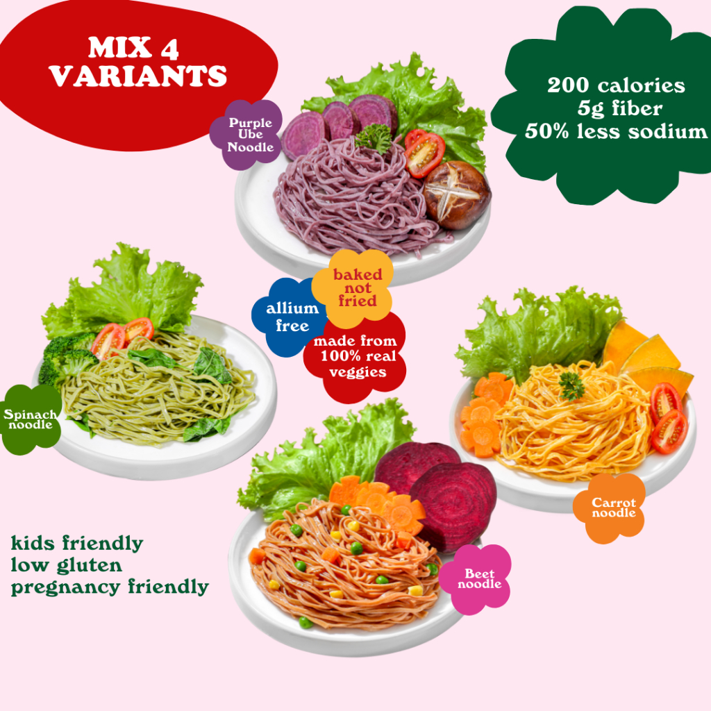 (Mix Rasa) Vegan Baby Mie Goreng Mix Rendah Kalori Sehat Bayam Brokoli, Wortel Bit, Wortel Pumpkin, Ubi Ungu