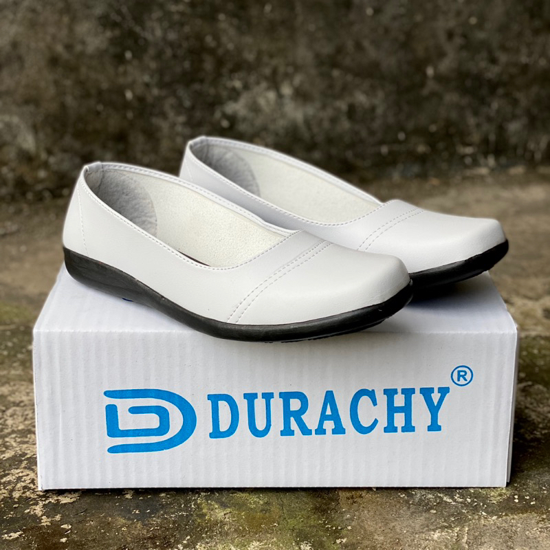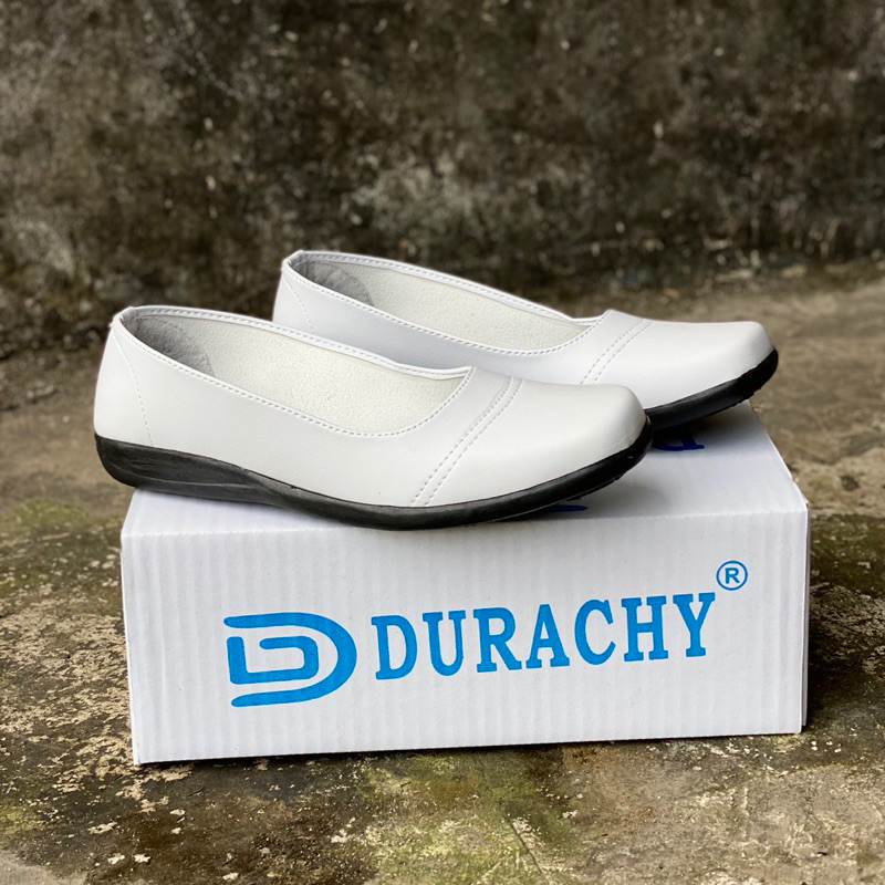 DURACHY Sepatu Pantofel Perawat Wanita Putih Tanpa Hak