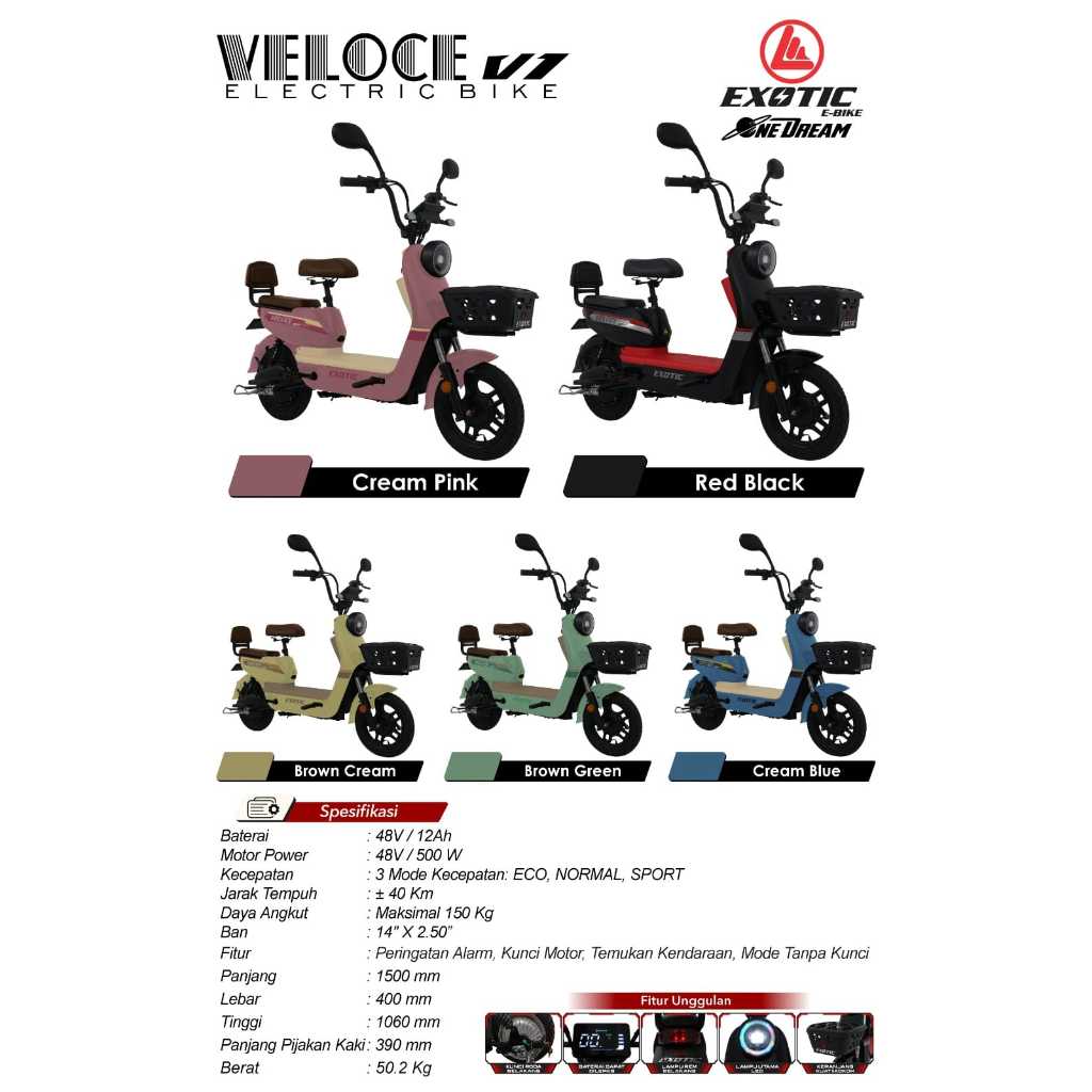 Sepeda Listrik Exotic Veloce V1 Aviator At 226 500Watt 48V 12Ah