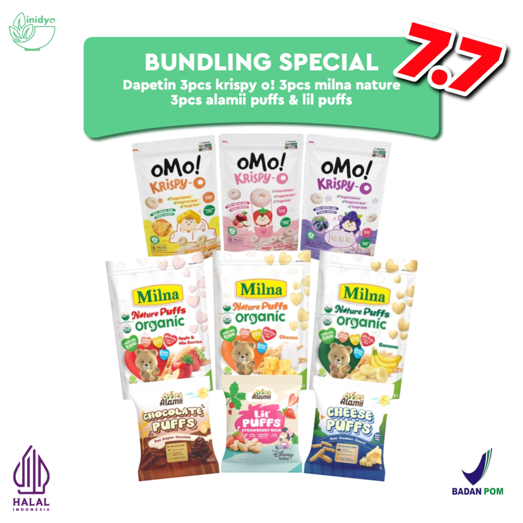 7.7 SPESIAL BUNDLING INIDYA Isi 9 Pcs- Omo Crispy O Milna Nature Puffs Alamii Puffs Snack Bayi Snack Mpasi Snack Sehat S