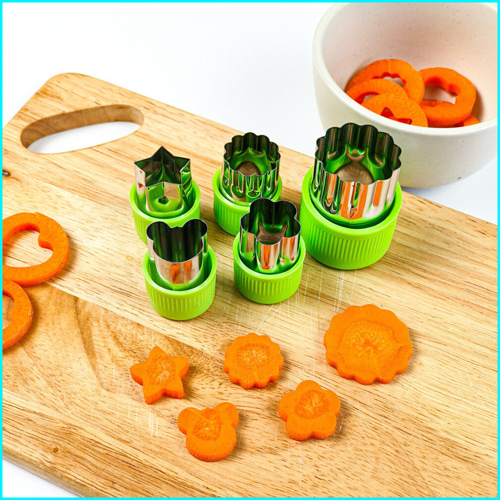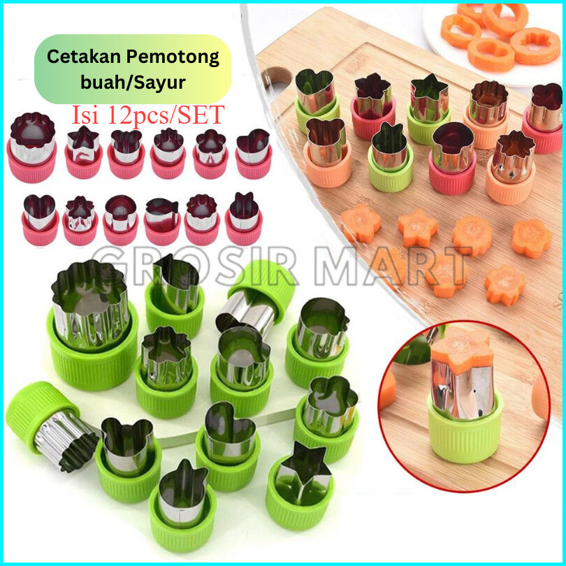 12 Pcs Set Cetakan Pemotong Sayuran Buah Kue Keju Biskuit Bentuk Bunga Bintang Hati Ikan Kelinci Beruang Bahan Stainless