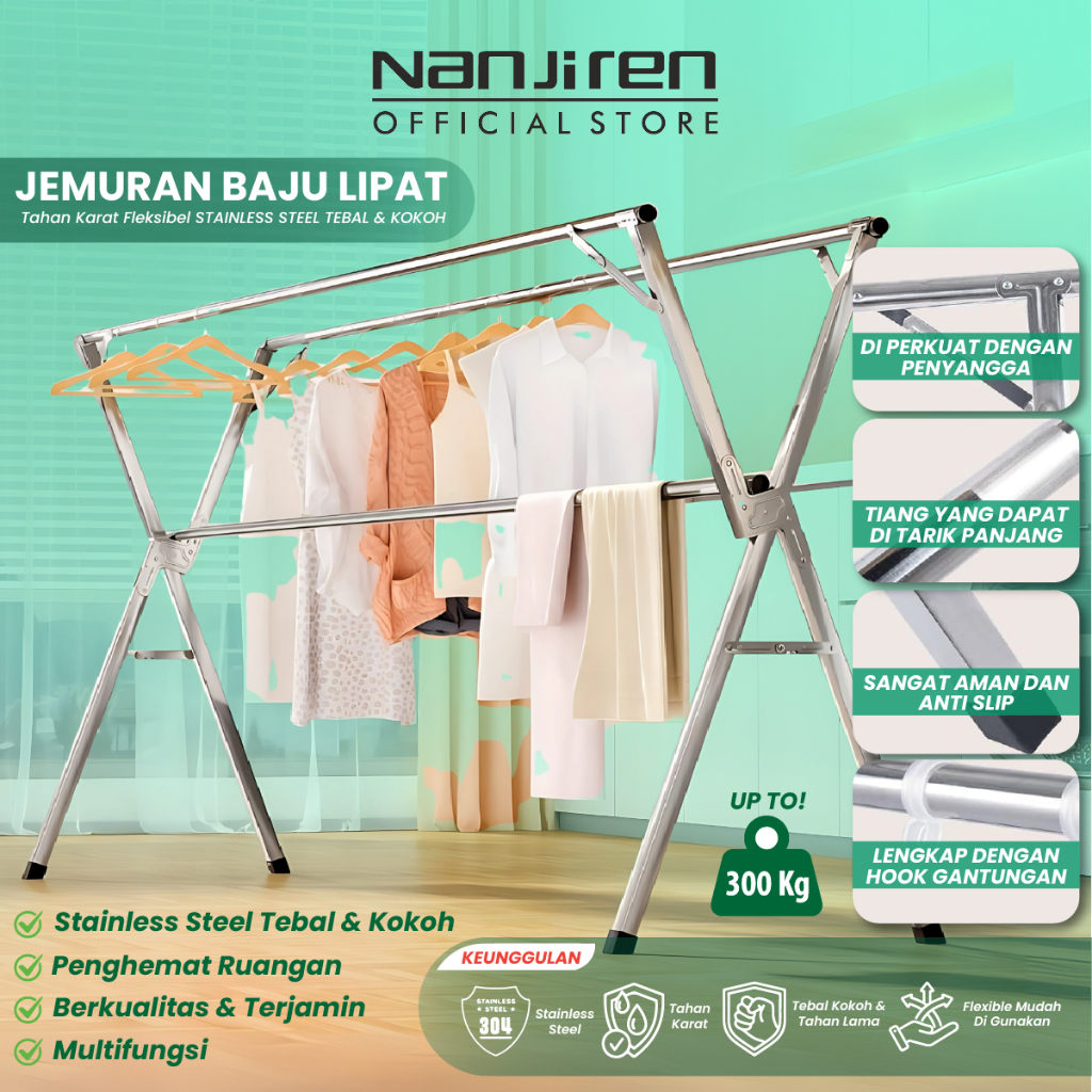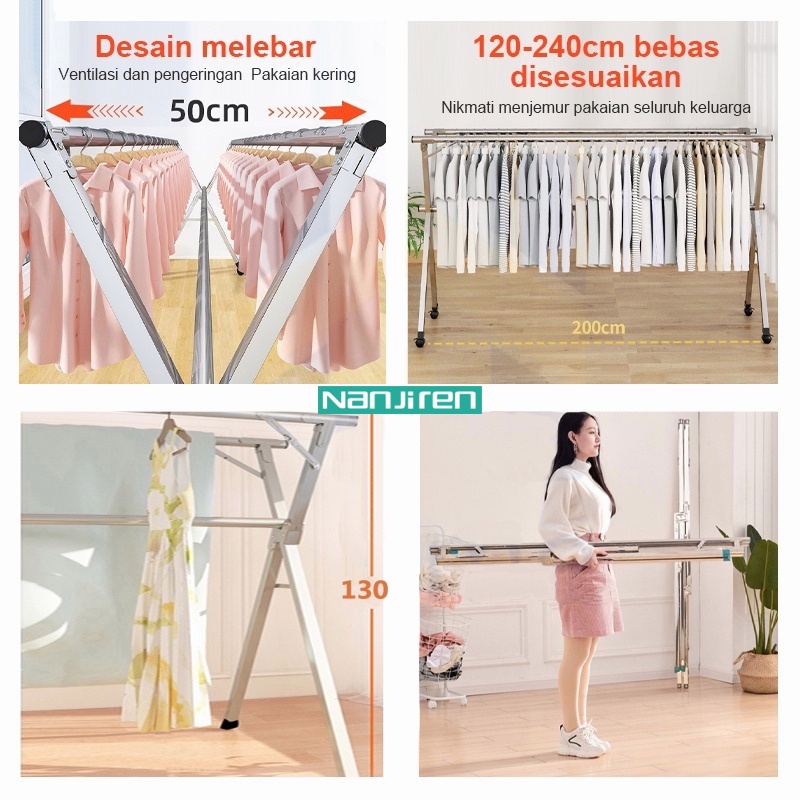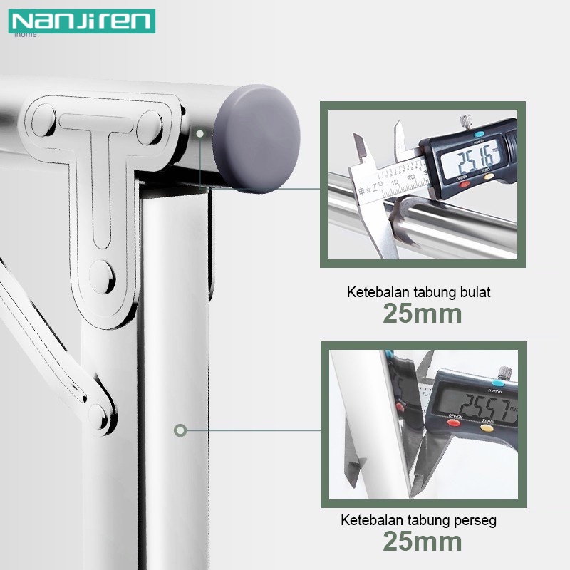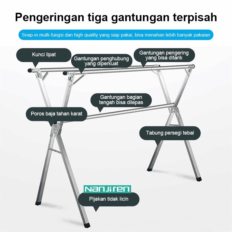 Nanjiren Jemuran Pakaian Gantungan Baju Lipat Tarik Stainless Steel Portable Tahan Karat Kuat Kokoh