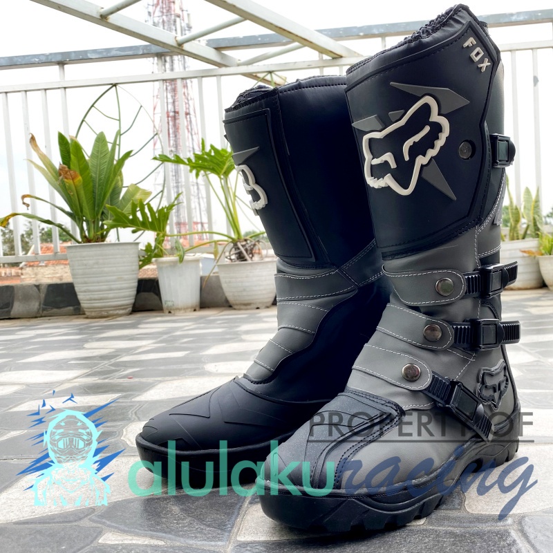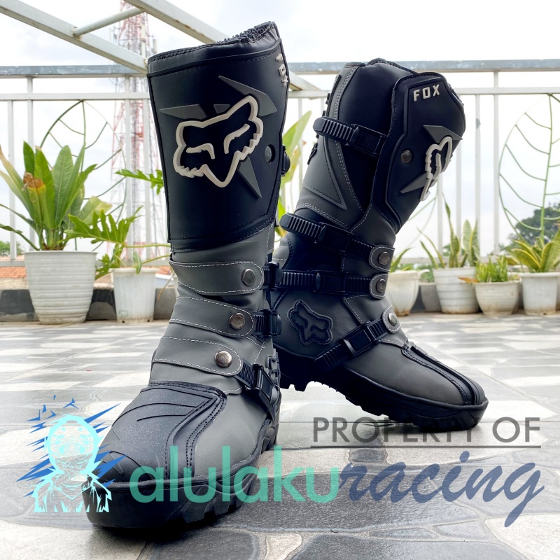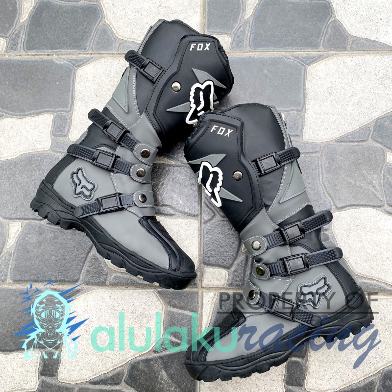 Sepatu Trail Boots SV Motocross MX Lokal Premium Best Quality - Grey Black
