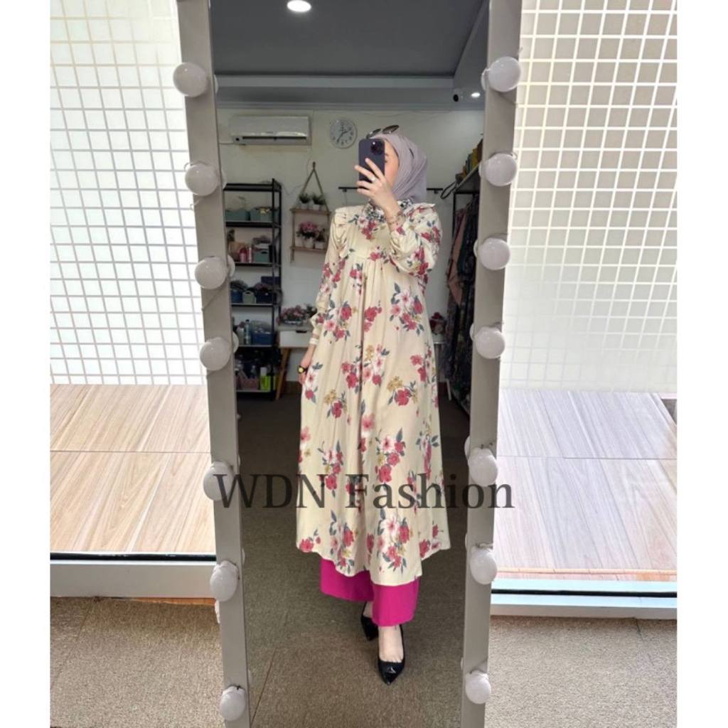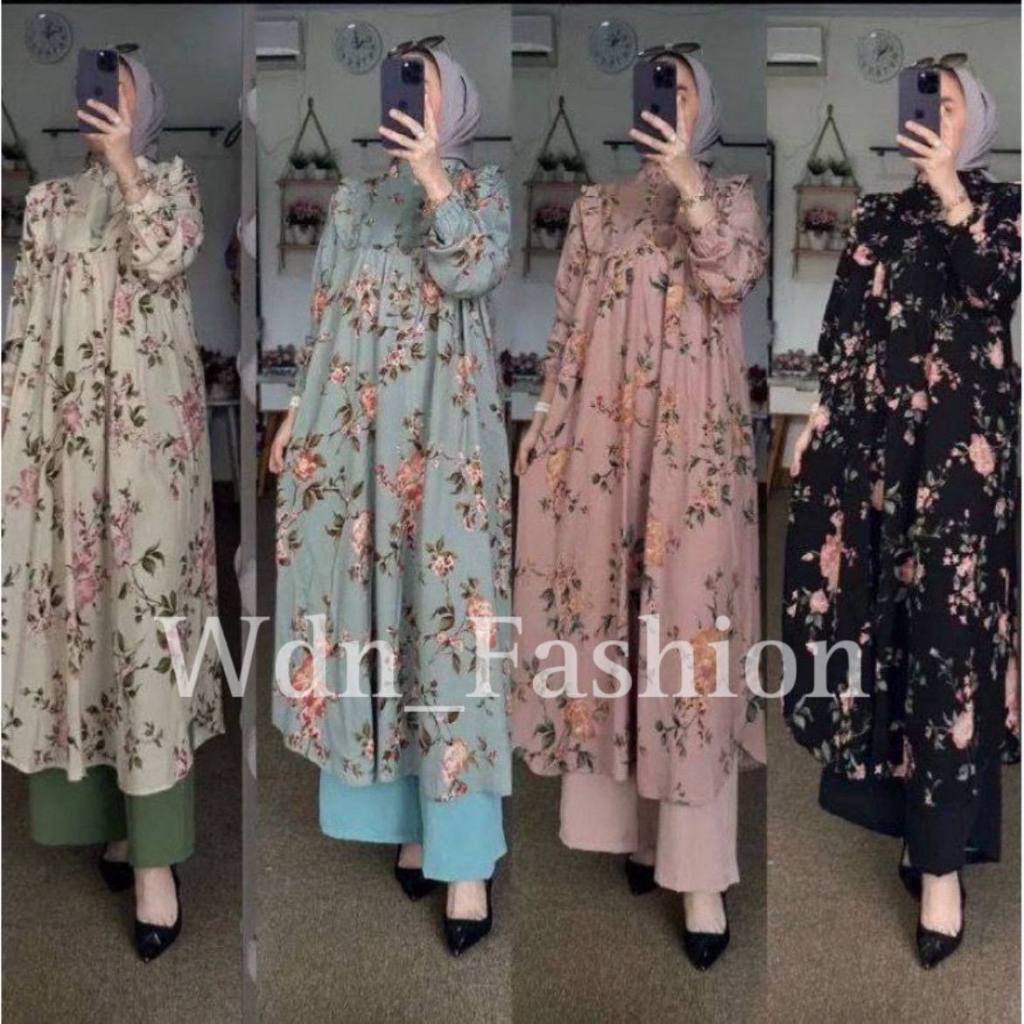 SETELAN MIDI KATUN DELVINA MIX PANTS / ONESET SETELAN TUNIK RAYON PREMIUM MOTIF BUNGA / ONESET LONG TUNIK RAYON MOTIF PREMIUM LD110