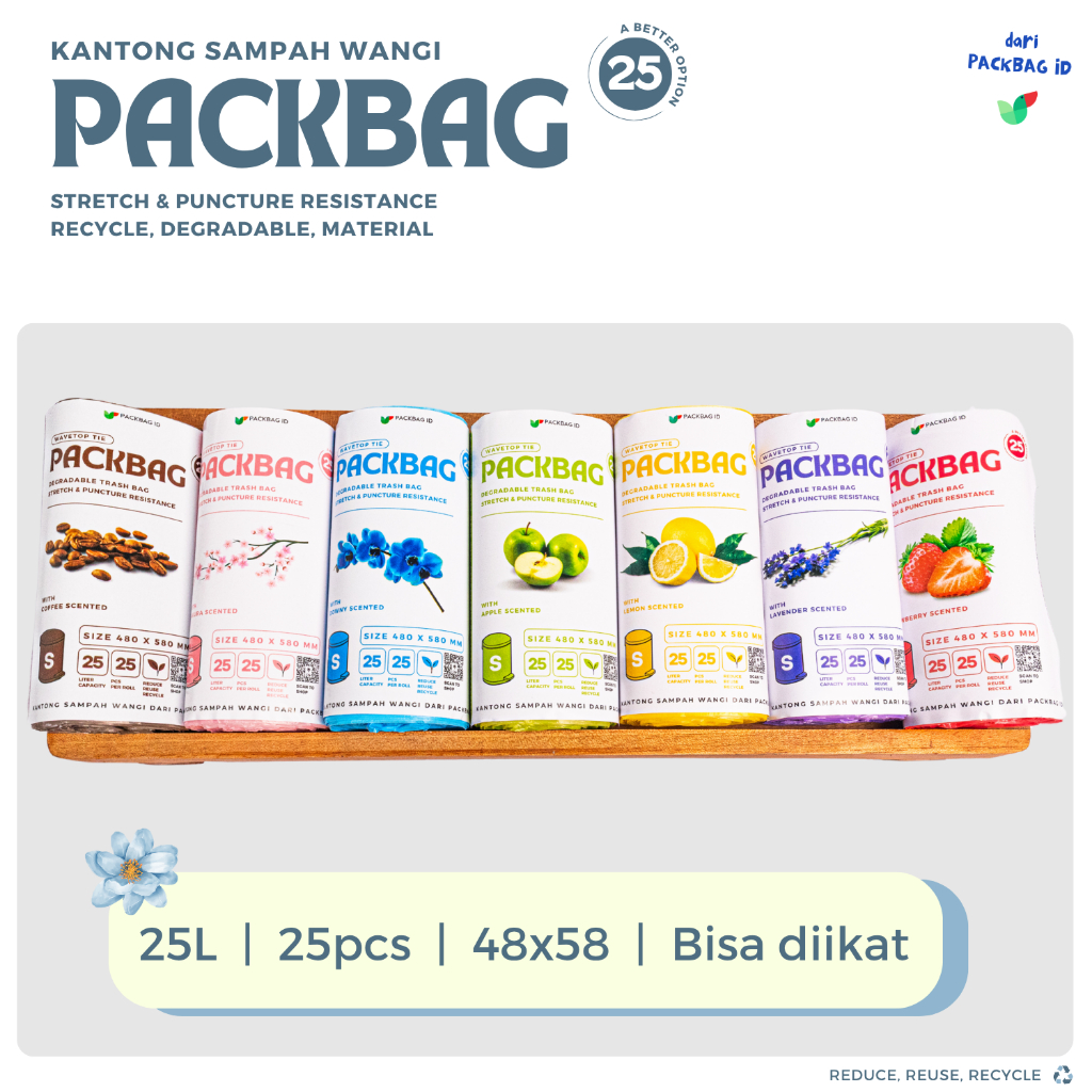 PACKBAG ID Basket Liner S, 25L, Plastik Sampah Wangi, Plastik Sampah Gulung, Degradable 25pcs