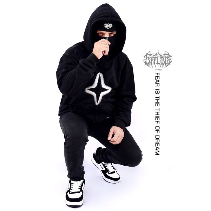 OFFLINE APPAREL Hoodie Balaclava Zipper Fear Is The Thief Of Dreams
