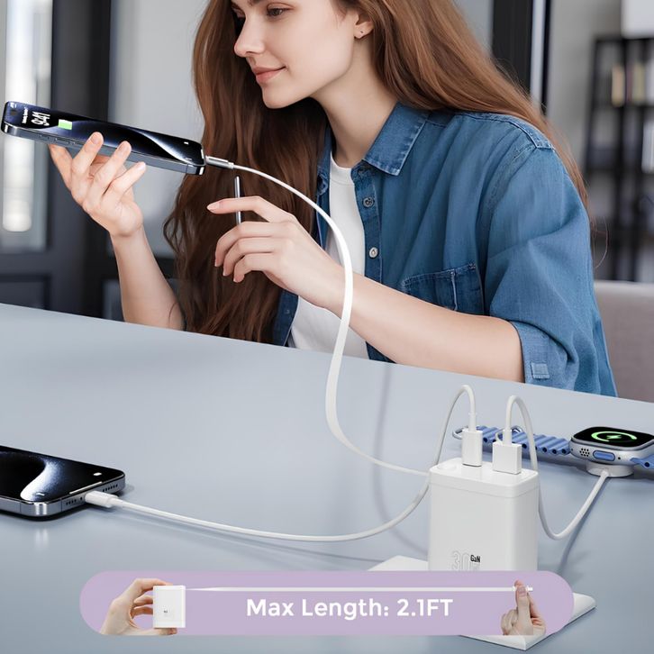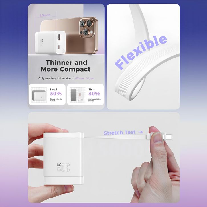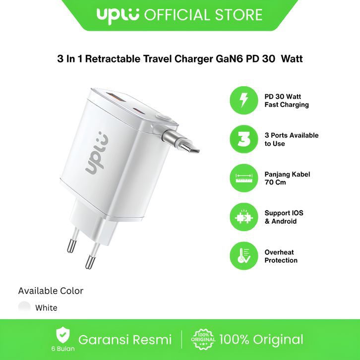 UPLU PD 30w Charger Fast Charging GaN Pro Built in Retractable Kabel USB Type C