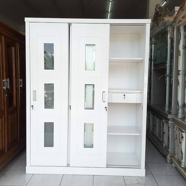 (GRATIS MASKER) Lemari Pakaian Lemari Baju 3Pintu Sliding Putih Kayu
