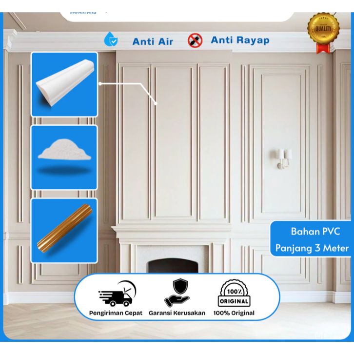 PROMO [3METER] List Plafon Wall Moulding PVC List Border Molding Anti Rayap Dan Anti Air Warna Putih uhicr
