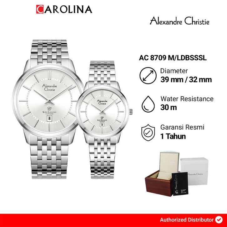 Jam Tangan Couple Alexandre Christie Classic AC 8709 M/LDBSSSL Silver Dial Silver Stainless Steel Strap