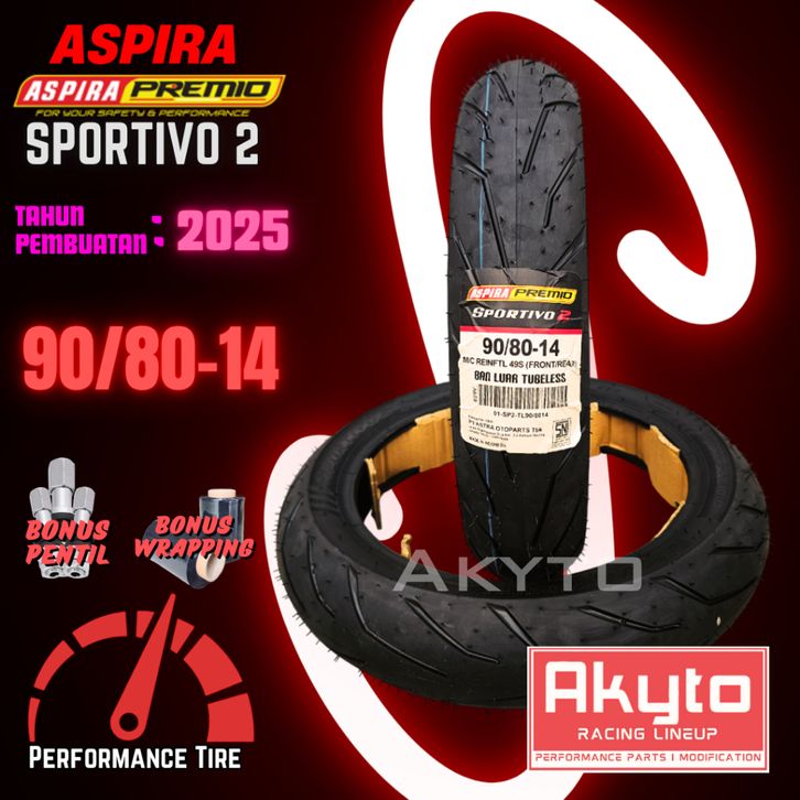 [PRODUKSI TERBARU!] ASPIRA PREMIO SPORTIVO 2 / BAN TUBELESS FREE PENTIL / BI COMPOUND / BAN MOTOR TUBLES MATIC / METIK T